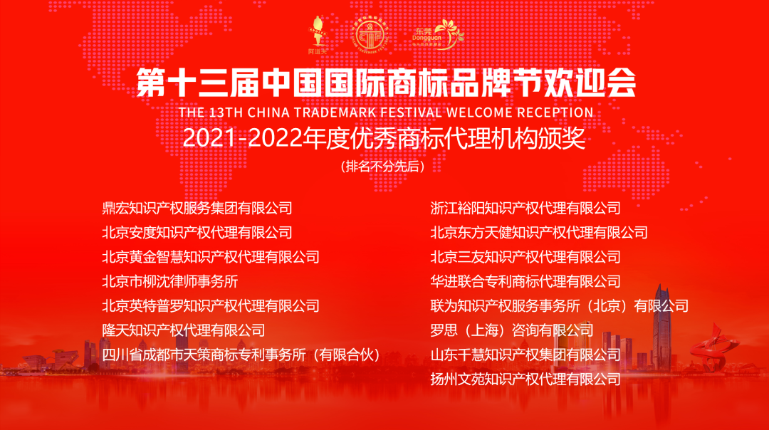 在6月16日舉辦的第十三屆中國國際商標品牌節(jié)歡迎會頒獎活動中,華進憑借規(guī)范的團隊管理、高質量的專業(yè)服務和良好的業(yè)界聲譽榮獲“2023年度品牌商標建設卓越貢獻獎”,并被評為“2021-2022年度優(yōu)秀商標代理機構”。