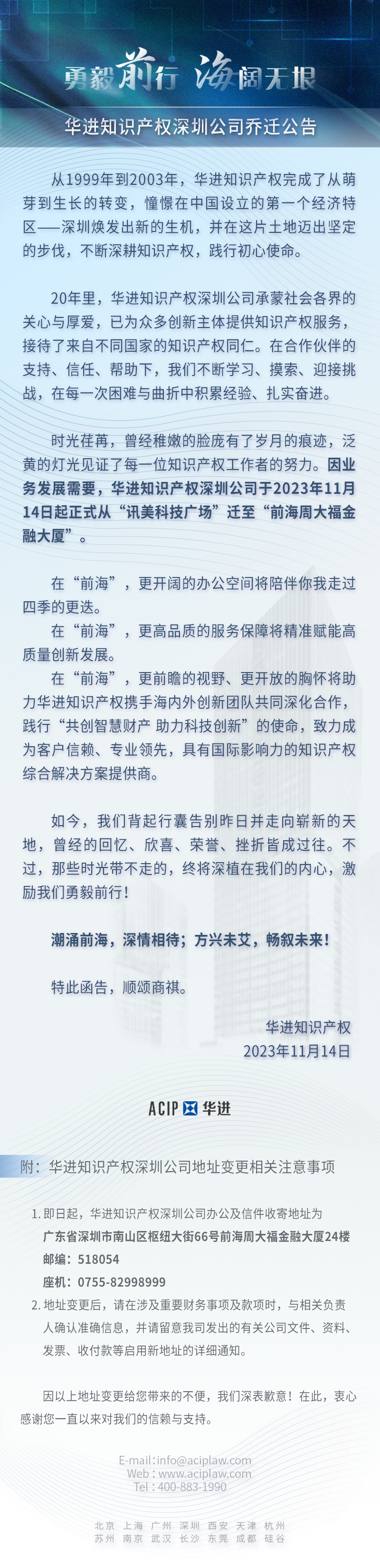 勇毅前行 海闊無垠——華進深圳喬遷公告
