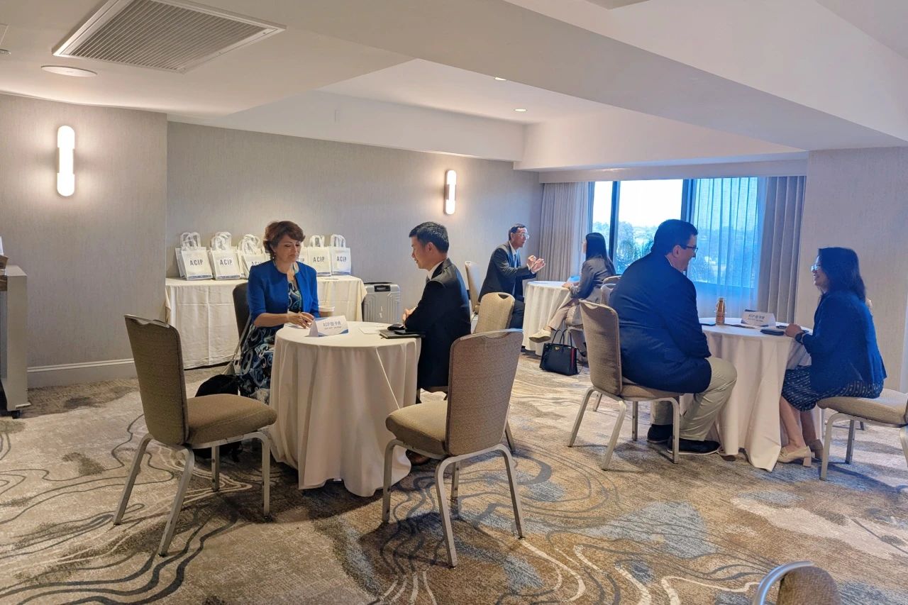 會客廳內(nèi),華進代表團與多家國際知識產(chǎn)權(quán)服務機構(gòu)及企業(yè)代表進行接洽,向國際同行介紹了中國知識產(chǎn)權(quán)保護體系的最新進展,同時積極就知識產(chǎn)權(quán)創(chuàng)新服務模式、區(qū)域性法律差異應對等話題與外所展開交流。大家共同分析當前全球知識產(chǎn)權(quán)生態(tài)系統(tǒng)的變化趨勢,并探討了服務機構(gòu)如何通過資源整合與專業(yè)協(xié)作,為企業(yè)提供更高效的跨境知識產(chǎn)權(quán)解決方案。