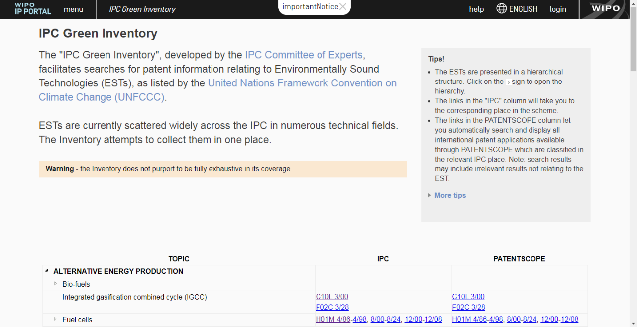 1、WIPO“IPC Green Inventory”和“WIPO GREEN”