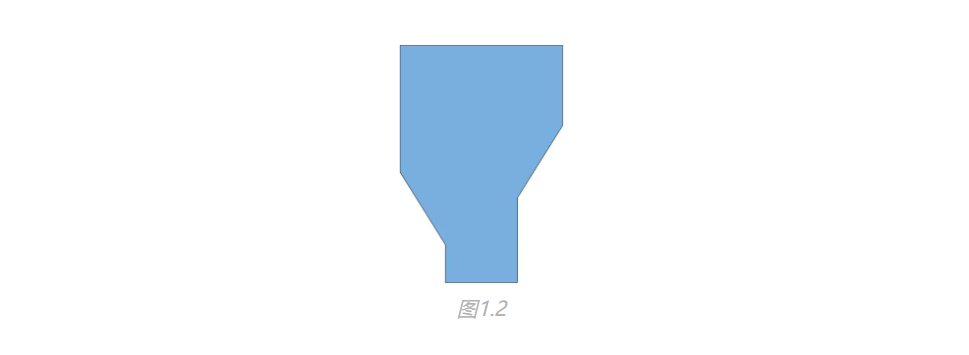發(fā)明人將落料斗的結(jié)構(gòu)改進為如下圖1.2所示的結(jié)構(gòu)(記作落料斗結(jié)構(gòu)2)。在從落料斗結(jié)構(gòu)1到落料斗結(jié)構(gòu)2的改進中,可理解為對落料斗錐面部分進行了“分割”式的優(yōu)化。落料斗結(jié)構(gòu)2的錐面角度更大,相當于把落料斗結(jié)構(gòu)1相對平緩的錐面在角度維度上進行了分割處理,使其更具變化性。這種變化讓物料在下落過程中所受的約束變小,重力沿錐面方向促使物料下滑的分力增大,從而加快物料向出料口的流動速度,減少物料在斗內(nèi)的停留與堆積,提高了落料效率。